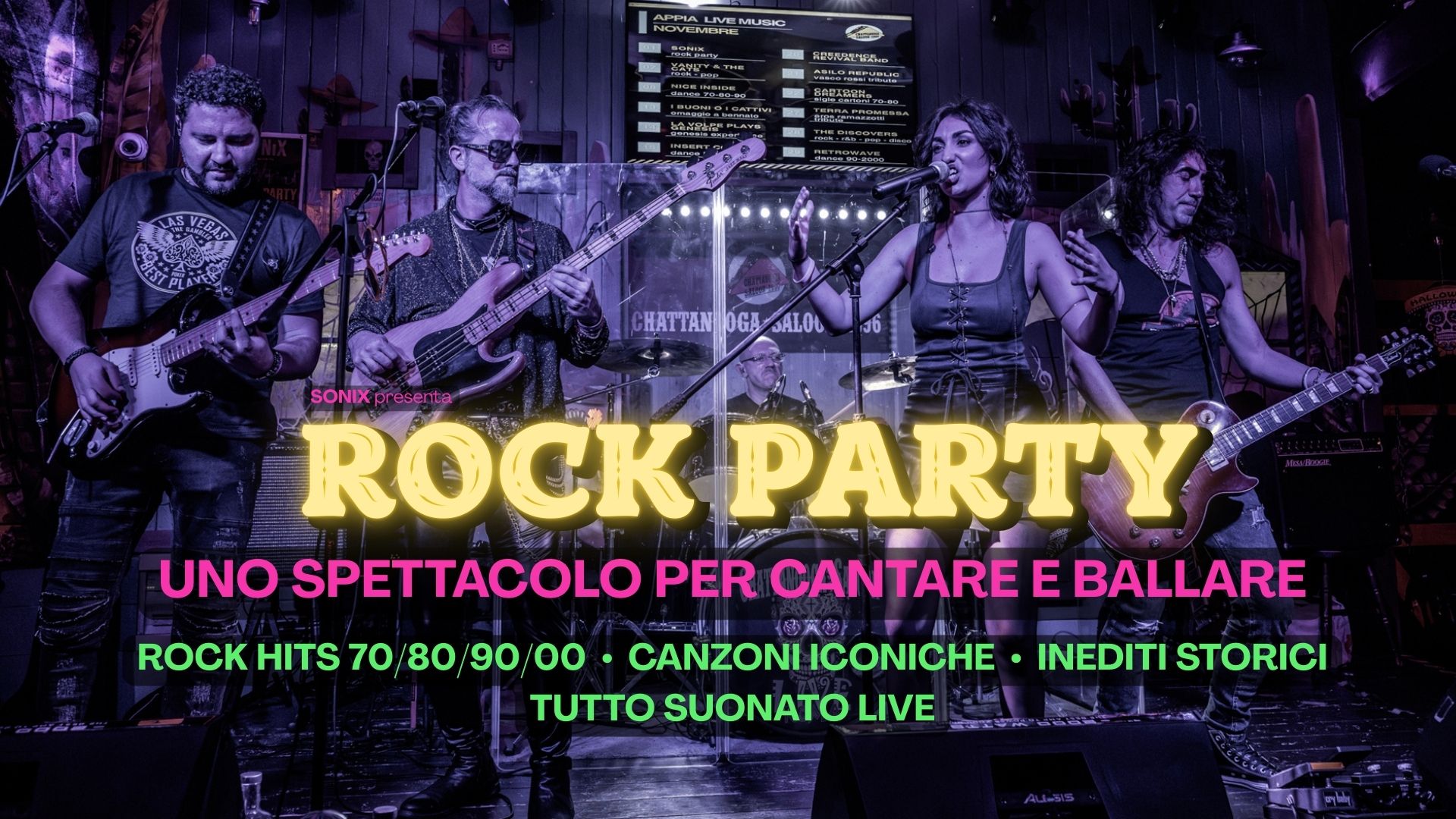 SONIX è una band rock-indie di Roma che ha al suo attivo centinaia di concerti, esperienze radiofoniche, televisive, pubblicitarie, teatrali, dischi, videoclip, partecipazioni a Festival e rassegne. In questa stagione viene presentato lo spettacolo ROCK PARTY , in cui il pubblico è coinvolto e diventa protagonista cantando e ballando le canzoni con noi: inizia come un concerto, finisce come una festa. La scaletta è divisa in due parti: la prima è più di ascolto per scaldare l'ambiente e permettere a tutti di partecipare compatibilmente con la fine della cena, ma nella seconda parte si entra nel vivo e le canzoni in scaletta si susseguono con bpm crescente , andando poi a chiudere la serata con le canzoni più veloci. Il repertorio è vasto e variegato, gli artisti suonati sono molti e spesso fuori dai circuiti tribute (A-ha, Michael Sembello, Eurythmics, Billy Idol, Ac/Dc, Bowie, Buggles, Alannah Myles, Queen, Patty Smith, Knack, Madonna, Depeche Mode, Tears for Fears e molti altri) , ed inoltre nella prima parte inseriamo alcune nostre canzoni che grazie a Spotify e YouTube stanno avendo riscontri positivi, ritrovandoci con il pubblico che ne canta i ritornelli: abbiamo avuto modo di constatare che questa formula con cui presentiamo lo spettacolo funziona molto, il pubblico è costantemente coinvolto e la partecipazione è calda ed appassionata.